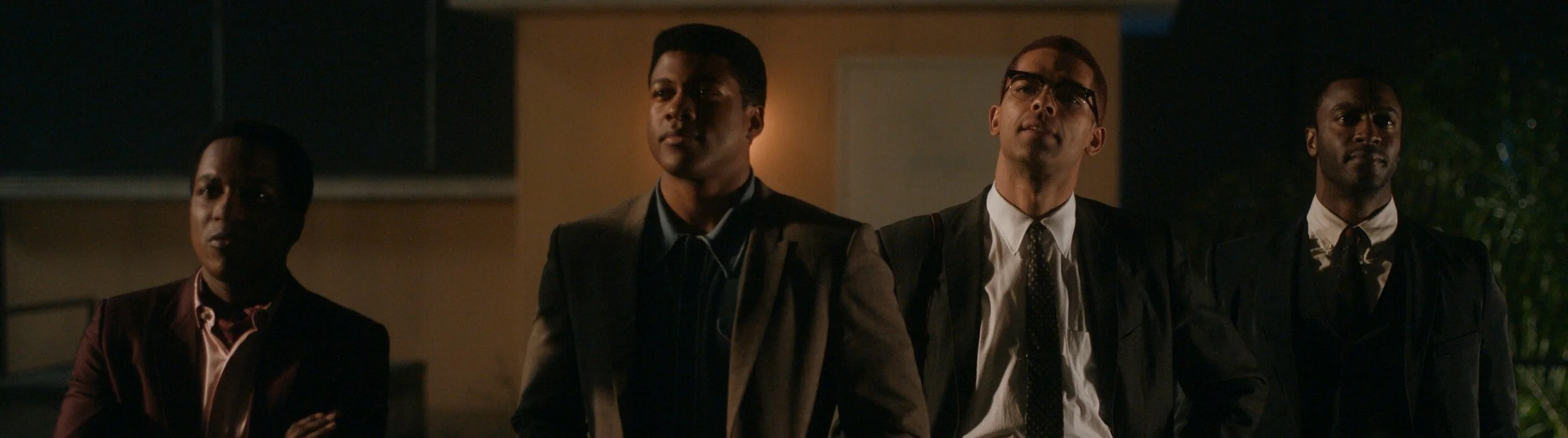 Moving on to yet another massive influence on this film's overall success: the ensemble cast. Everyone is absolutely terrific, but my personal standout has to be Kingsley Ben-Adir (The Photograph, King Arthur: Legend of the Sword) as Malcolm X. Kingsley is the one who triggers everything and who keeps bringing the necessary conversations to the screen through an emotionally powerful display. Leslie Odom Jr. (Hamilton, Harriet) follows close behind with a phenomenal, charmful interpretation of Sam Cooke, offering his own beautiful voice to the movie's music (Terence Blanchard). Aldis Hodge (The Invisible Man, Hidden Figures) delivers a grounded yet engaging performance as Jim Brown, while Eli Goree (Race) plays a cocky, overconfident Cassius Clay (later known as Muhammad Ali) who is a bit annoying at first but quickly proves to be much more than that.