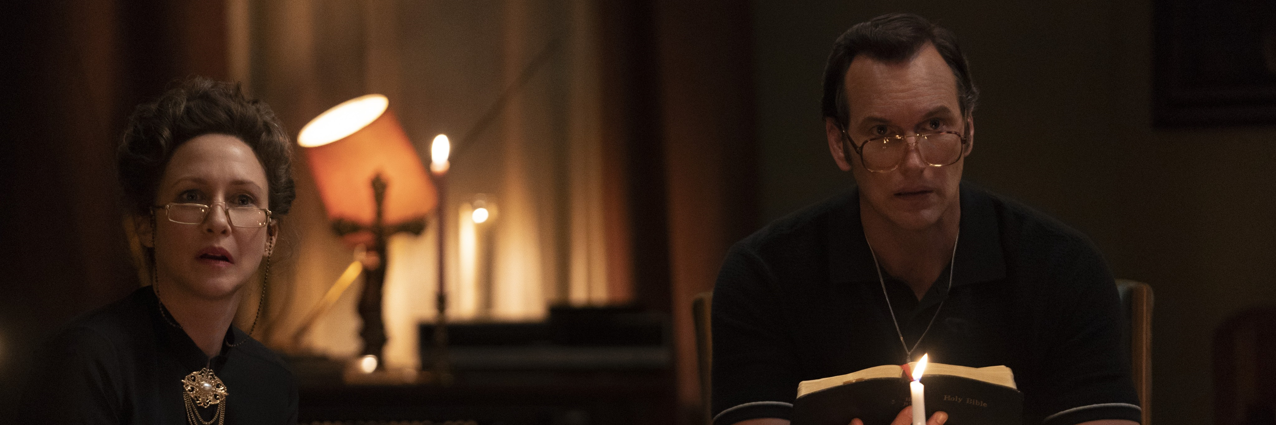Acting-wise, it's also where these films triumph. Patrick Wilson and Vera Farmiga share palpable chemistry, deeply elevating their characters' emotional connection. At its core, The Conjuring features a love story between Ed and Lorraine Warren, ultimately being their grounded, convincing, loving relationship that keeps the viewers interested in the least "based on a true story" events. Both actors deliver remarkable performances, as does the legendary John Noble (The Lord of the Rings, Fringe) as a former priest. I didn't know about his casting before the movie, so I was genuinely surprised by seeing Noble on the big screen again. He's absolutely phenomenal, as expected, and quite creepy as a mysterious character.