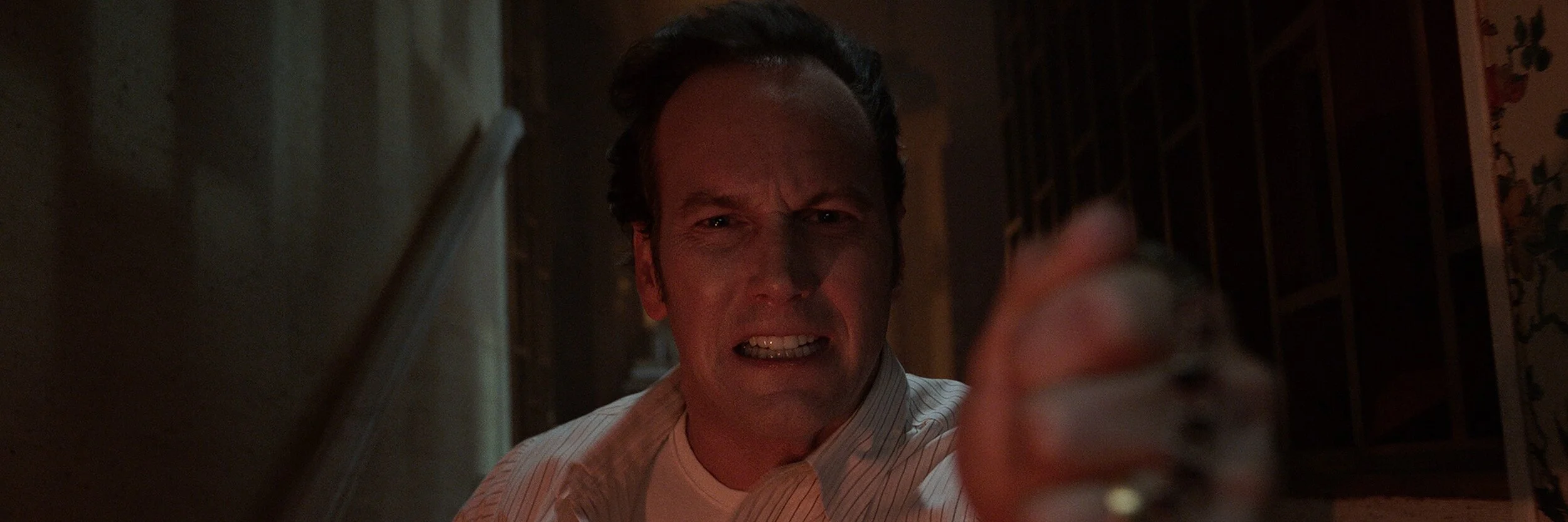 The biggest disappointment is something I feared would happen without James Wan at the helm. The once terrifying, suspenseful atmosphere during the effective, creative jumpscare sequences now gives place to the generic build-up that viewers experience in some of the cheapest horror movies of today. Due to a character's health issue, the tension levels are constantly high for this person in particular, but for most of the runtime, the general environment lacks the essential scary feeling. The jumpscares look lazy and too obvious, a cliche that The Conjuring films fought hard to distance themselves from. In addition to this, it's a much darker movie than the rest in terms of lighting.